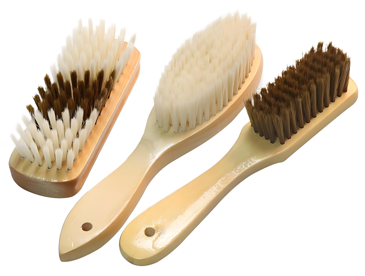 Um preto é para removedores de manchas secos e um branco é para removedores de manchas úmidos. Durante a operação, as pessoas devem manter a escova perpendicular ao tecido e bater para cima e para baixo para soltar a mancha. Deve-se lembrar que limpar a escova imediatamente após cada uso pode evitar resíduos químicos.