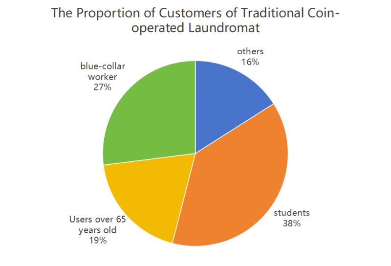 Laun tradicional operado por moedas seco conta s representa 42% do mercado global de autoatendimento, com os estudantes representando 38% (de acordo com a Ummerican Llavanderia Association), os operários (27%) e os usuários mais velhos (19% com mais de 65 anos).