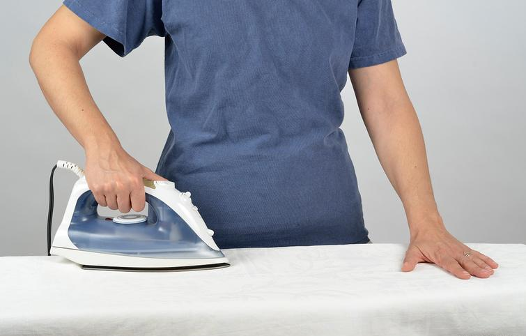 Um pano úmido deve ser colocado entre o ferro e o tecido.